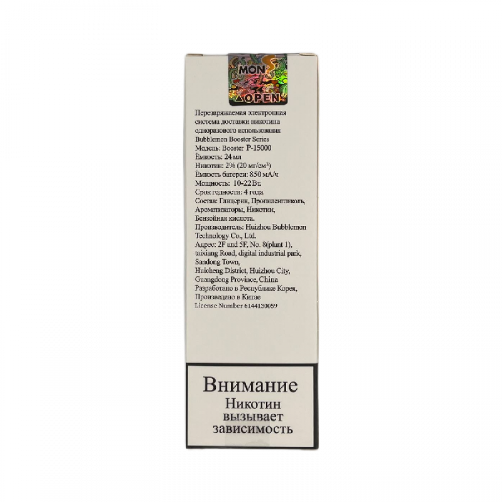 Технические характеристики Bubble Mon Booster P-15000 Виноград Яблоко